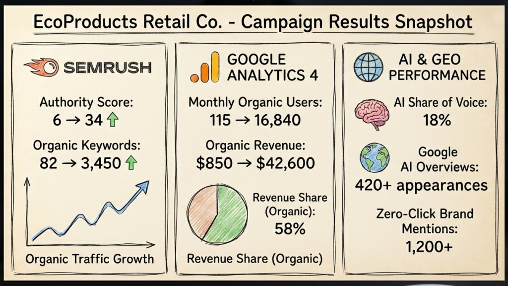 Implementing comprehensive SEO strategy and technical optimization that drove 280% growth in organic search traffic, tripled qualified leads, and positioned an eco-friendly products retailer as an industry authority within eight months.