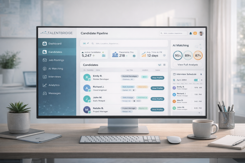 Creating an AI-powered recruitment marketplace that streamlined candidate matching for staffing agencies while helping 5,000+ job seekers find better career opportunities through intelligent skill assessment and automated job matching.