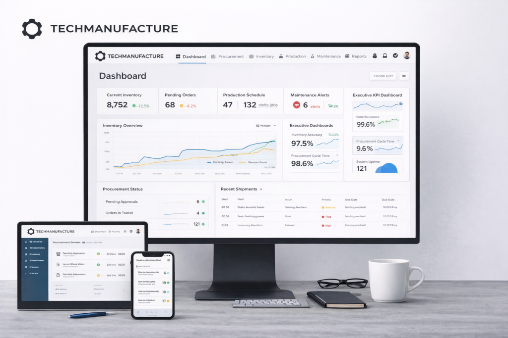 Transforming a 12-year-old manufacturing ERP into a cloud-based enterprise platform with intelligent automation, cross-device accessibility, and streamlined workflows that reduced manual tasks by 65%.